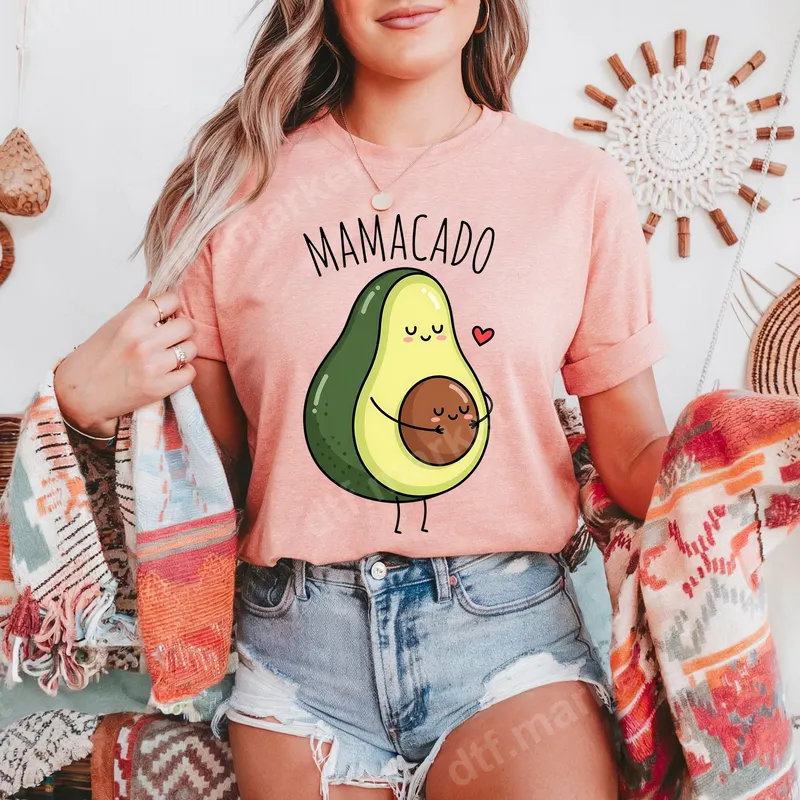 See allEmbrace the joy of motherhood with our heartwarming Mamacado DTF transfer. This adorable design features a smiling pregnant avocado lovingly embracing its 'seed,' with the playful 'Mamacado' text above. It's a sweet and humorous nod to expecting mothers, making it a perfect ready to press graphic for custom apparel. Get creative and add this unique heat press transfer to your collection. This charming design is ideal for expecting mothers, new moms, or as a thoughtful gift for a baby shower. It’s perfect for pregnancy announcements, gender reveals, or simply celebrating the journey of motherhood every day. Create personalized gifts for wives, daughters, or friends who are about to embark on their amazing 'Mamacado' adventure. It's an iron on transfer that brings smiles. Our high-quality DTF transfers are incredibly versatile and can be applied to a wide range of fabrics, including cotton, polyester, and various blends. Achieve professional results easily with a heat press at 300-325°F for 15 seconds with medium pressure, or apply it smoothly using a household iron. Forget the hassle of weeding; this heat press design is ready to apply right out of the package. Experience superior durability and vivid colors with our premium direct to film transfer. Each design boasts exceptional vibrancy, crack-resistant flexibility, and a soft-to-touch finish that feels great on any garment. Crafted with professional-grade DTF film and a strong adhesive, your Mamacado t-shirt transfer will withstand countless washes, keeping its charm for years to come.