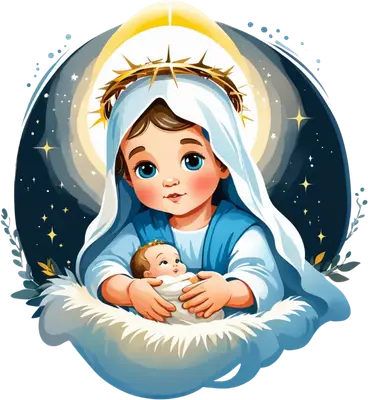 Cute Mary & Baby Jesus Nativity DTF Transfer with Crown of Thorns