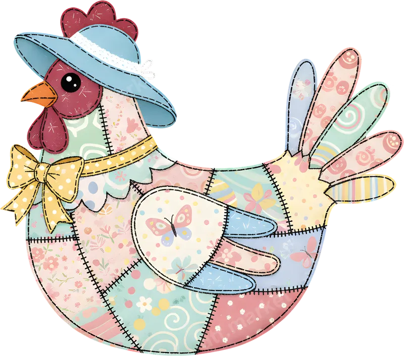 See allBring delightful rustic charm to your apparel with this adorable patchwork chicken DTF transfer. This charming hen, crafted from an array of pastel patterns like florals, polka dots, and stripes, evokes a cozy, handcrafted quilt aesthetic. Adorned with a light blue hat and a cheerful yellow polka-dotted bow, this ready to press transfer adds a whimsical, farmhouse accent to any garment or accessory. This cute heat press design is ideal for anyone who loves chickens, country living, or quaint spring decor. It's a wonderful choice for crafters, homesteaders, and DIY enthusiasts looking to personalize gifts or create unique items. Perfect for Easter celebrations, spring festivals, or as a thoughtful Mother's Day gift, this design adds a warm, inviting feel to everyday wear or special occasion outfits. Applying this premium heat transfer is quick and easy, suitable for both beginners and experienced crafters. Our direct to film transfer works beautifully on cotton, polyester, and their blends. Simply use a heat press set to 300-325°F for 15 seconds with medium pressure. It can even be applied with a household iron (follow included instructions). No tedious weeding is required for this iron on decal! Experience professional-grade results with this high-quality t-shirt transfer. Engineered for exceptional durability, the vibrant colors remain true wash after wash, resisting cracking and fading. The soft-touch finish ensures comfort, while the strong adhesive guarantees a long-lasting bond to your garment. Elevate your wardrobe with this charming apparel transfer, designed to bring joy and personality to any item.