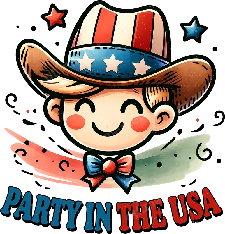 See allUnleash your American spirit with this irresistibly cute 'Party in the USA' DTF transfer. This vibrant design features a smiling cartoon character sporting a classic red, white, and blue cowboy hat adorned with stars, complete with a matching bow tie. Festive splashes of red, white, and blue paint strokes, along with the bold 'PARTY IN THE USA' text, create a joyful and patriotic vibe. This premium direct to film transfer is ready to press, making it effortless to customize your apparel. This delightful design is perfect for anyone looking to show off their national pride. Ideal for families, kids, and adults attending 4th of July celebrations, Memorial Day barbecues, Labor Day gatherings, or any patriotic event throughout the year. It also makes a fantastic gift for friends and loved ones who enjoy festive American-themed apparel and DIY projects. Applying this heat press transfer is incredibly easy, making it accessible for both experienced crafters and beginners. Our high-quality transfers work beautifully on a wide range of fabrics including cotton, polyester, and blends. Simply use a heat press at 300-325°F for 15 seconds with medium pressure, then cool peel. No complicated weeding or layering required, just a vibrant iron on transfer ready for action. Experience professional-grade quality with every application. Our DTF transfers are known for their exceptional durability, bright colors that resist cracking and fading, and a super soft feel that integrates seamlessly with your garment. Elevate your wardrobe and celebrate America with a lasting, professional-looking t-shirt transfer that stands out.