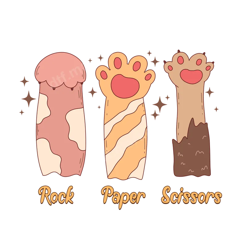 Cute Paw Rock Paper Scissors DTF Transfer - Playful Game Design
