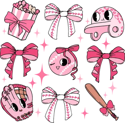 Cute Pink Baseball & Bows DTF Transfer | Kawaii Softball Design