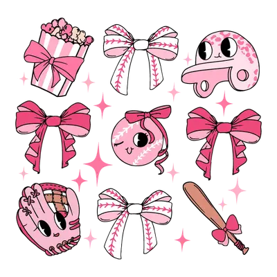 Cute Pink Baseball Softball Bows DTF Transfer Set