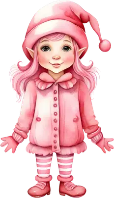 Cute Pink Christmas Elf DTF Transfer - Watercolor Style
