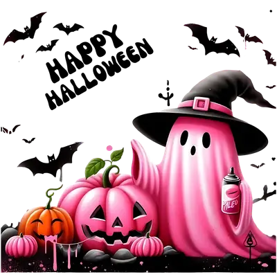 Cute Pink Ghost Halloween DTF Transfer with Witch Hat & Pumpkins