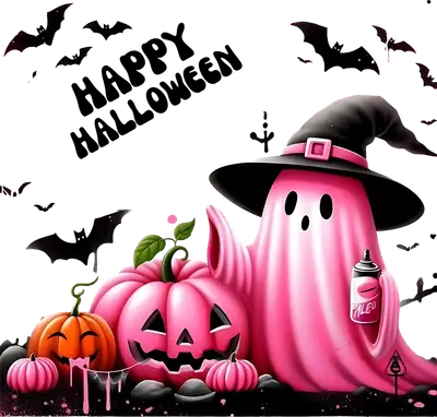 Cute Pink Ghost Witch Halloween DTF Transfer - Spooky Pumpkins & Bats Heat Press