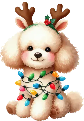 Cute Poodle Reindeer Christmas Lights DTF Transfer