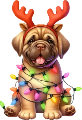 Cute Puppy Reindeer Antlers Christmas Lights DTF Transfer