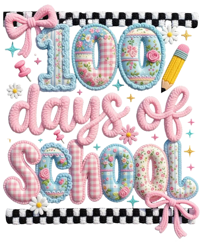 Cute Quilted 100 Days of School DTF Transfer | Ready to Press Design