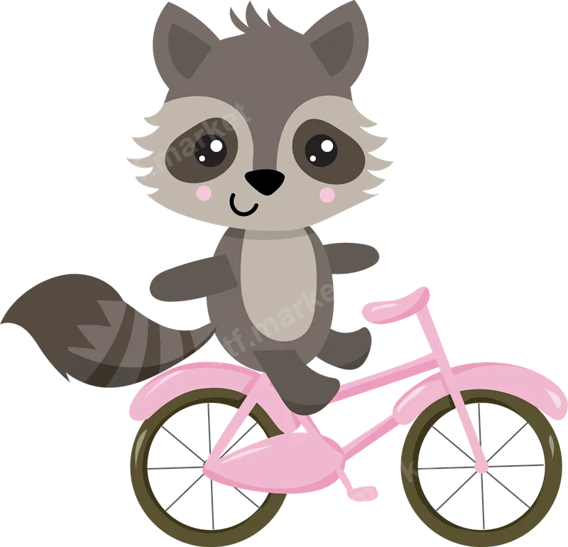Cute Raccoon Pink Bicycle DTF Transfer for Kids Apparel