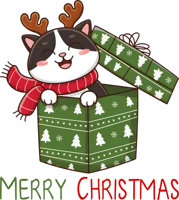 Cute Reindeer Cat in Gift Box Merry Christmas DTF Transfer