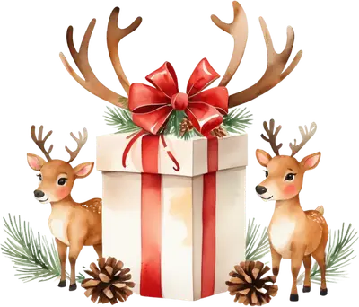Cute Reindeer & Gift Box Christmas DTF Transfer | Holiday Apparel