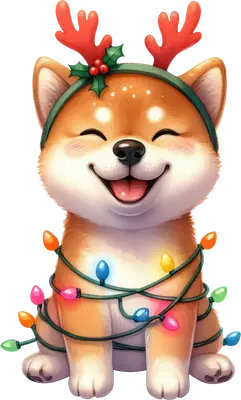 Cute Shiba Inu Christmas Lights Reindeer Antlers DTF Transfer
