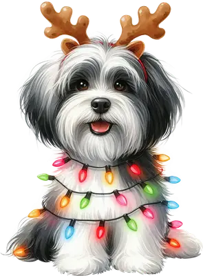 Cute Shih Tzu Dog Christmas Reindeer Antlers Lights DTF Transfer