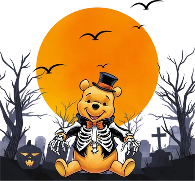 Cute Skeleton Bear Halloween DTF Transfer | Spooky Moon & Pumpkin Design