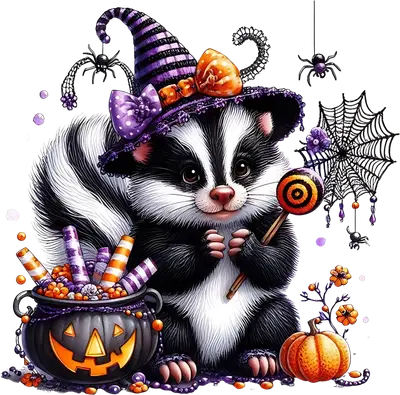 Cute Skunk Witch Halloween DTF Transfer | Jack-o'-Lantern & Candy