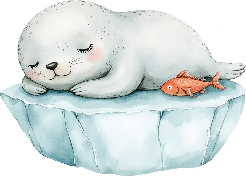 Cute Sleeping Baby Seal & Fish on Iceberg DTF Transfer | Ready to Press
