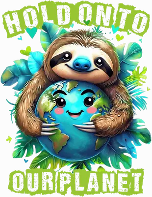 Cute Sloth Hugging Earth DTF Transfer - Hold Onto Our Planet