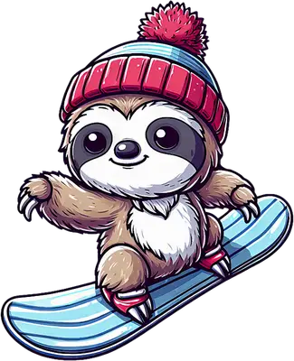 Cute Sloth Snowboarding DTF Transfer - Winter Sports Ready to Press Design
