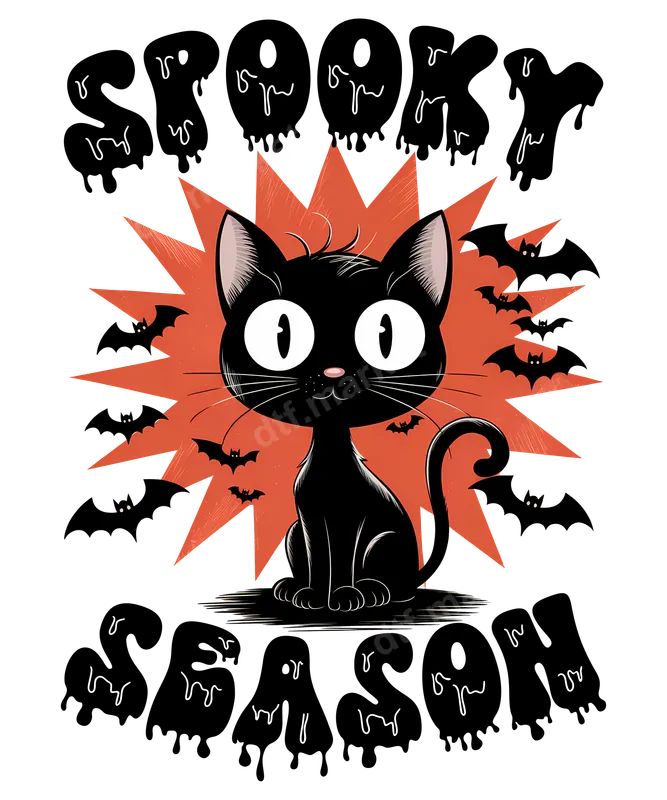 See allThis adorable "Spooky Season" DTF transfer captures the playful essence of Halloween with a charming black cat at its center. Surrounded by a vibrant red starburst and tiny bats, the design features bubbly, dripping text, adding an eerie yet cute touch. This ready to press design is perfect for creating festive apparel that stands out during autumn. This heat transfer design is ideal for Halloween enthusiasts, cat lovers, and anyone looking to add a fun, seasonal touch to their wardrobe or accessories. It's perfect for trick-or-treating outfits, Halloween parties, or simply enjoying the fall season in style. An excellent gift, this iron on transfer allows for easy customization of various items like t-shirts or tote bags. Our premium DTF transfers are versatile, applying to cotton, polyester, and blends. For best results, use a heat press at 300-325°F for 15 seconds with medium pressure, cold peel. No weeding or complicated layering is required, making application straightforward. This apparel transfer can also be carefully applied with a household iron for custom projects. Experience superior quality with our professionally produced DTF transfers. Each t-shirt transfer boasts vibrant colors, exceptional durability, and resistance to cracking or fading after multiple washes. Printed on high-quality DTF film with advanced inks, your customized shirt design will have a soft, smooth feel and long-lasting wear.