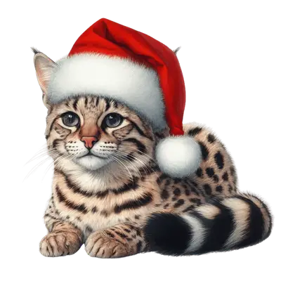 Cute Spotted Cat Santa Hat DTF Transfer - Christmas Apparel Design