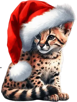 Cute Spotted Kitten in Santa Hat DTF Transfer | Christmas Cat Design