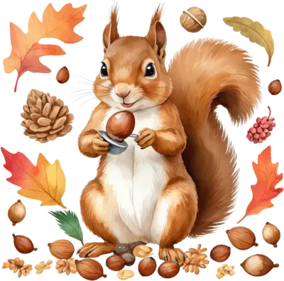 Cute Squirrel Acorn & Fall Leaves DTF Transfer Design
