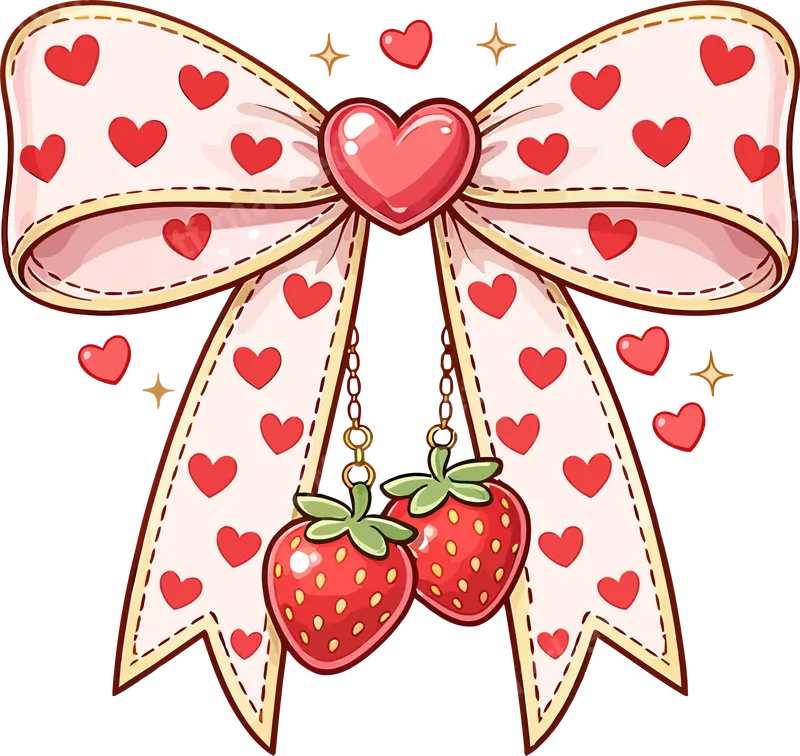 Cute Strawberry Heart Bow DTF Transfer - Sweet Romantic Design