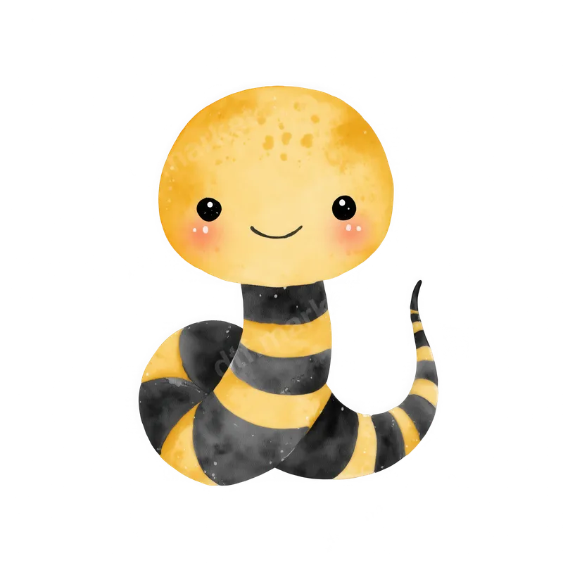 Cute Striped Snake DTF Transfer | Yellow & Black Cartoon Reptile