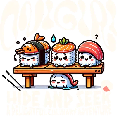 Cute Sushi Hide & Seek DTF Transfer Funny Cartoon