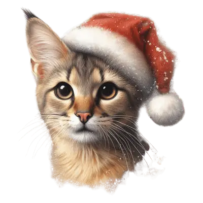 Cute Tabby Cat Santa Hat DTF Transfer - Christmas Kitten Ready to Press