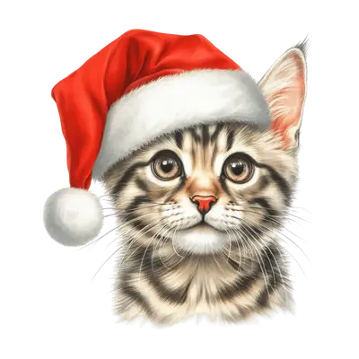 Cute Tabby Kitten in Santa Hat Christmas DTF Transfer