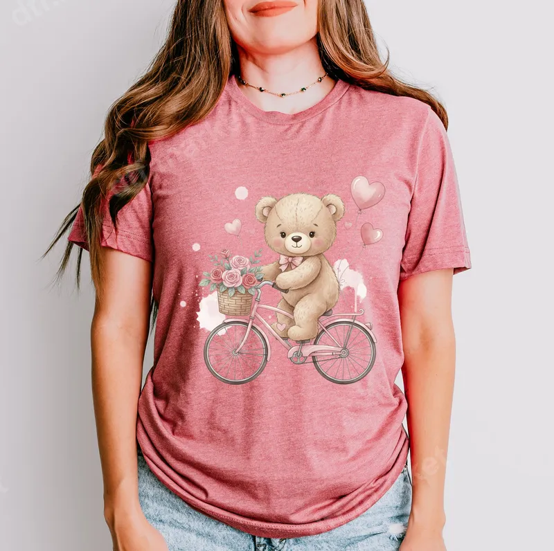See allDelight in the charm of our adorable watercolor-style teddy bear DTF transfer. This heartwarming design features a sweet teddy bear with a pink bow, happily riding a vintage-inspired pink bicycle adorned with a basket full of delicate pink roses. Whimsical hearts and soft pink splashes create an enchanting, loving aesthetic. This ready to press transfer is perfect for adding sweetness to any garment or accessory. This charming heat press design is ideal for anyone who loves cute animals, vintage bicycles, and romantic floral themes. It’s perfect for custom apparel for Valentine's Day, Mother's Day, birthdays, or as a thoughtful 'just because' gift. Surprise loved ones with a personalized shirt or tote bag. This versatile iron on transfer is a fantastic way to express affection for any special occasion. Applying your new shirt design is incredibly simple. Our premium DTF transfers work beautifully on cotton, polyester, and blends. For best results, use a heat press at 300-325°F for 15 seconds with medium pressure, followed by a cool peel. A household iron can also be used. Forget tedious weeding; these heat press ready designs save time and effort, making customization a breeze. Experience professional-grade quality with every direct to film transfer from dtf.market. Our designs boast vibrant colors, exceptional durability, and are highly crack-resistant, ensuring your creations look fantastic wash after wash. The finished transfer is soft to the touch, seamlessly blending with the fabric. Each heat transfer is printed on high-quality DTF film with strong, reliable adhesive, guaranteeing a long-lasting, beautiful result.