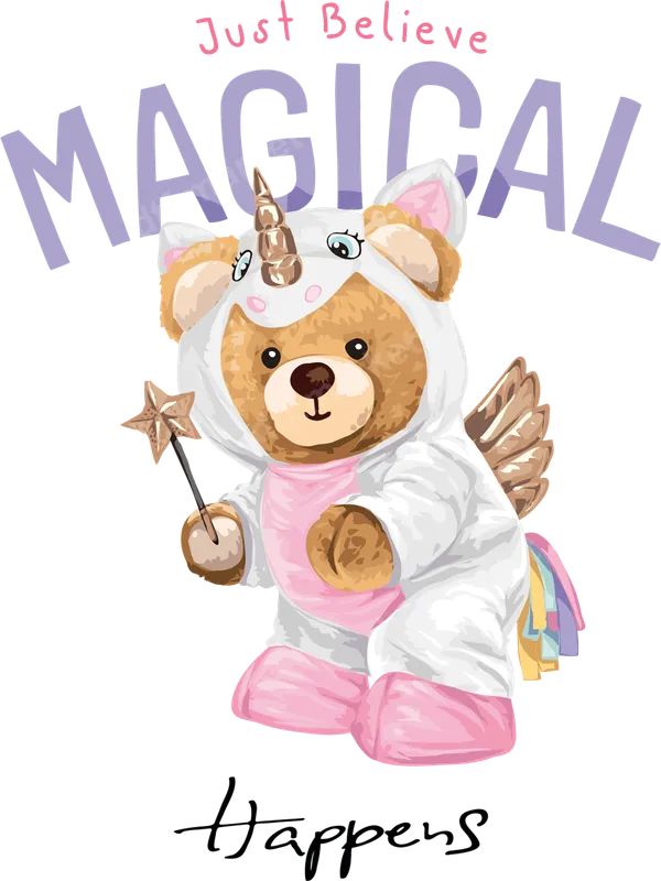 Cute Unicorn Bear 'Magical Happens' DTF Transfer | Ready to Press Design