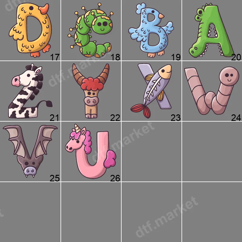 Cute Unicorn U Alphabet DTF Transfer for Kids Apparel