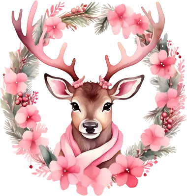 Cute Watercolor Baby Deer with Pink Floral Wreath DTF Transfer