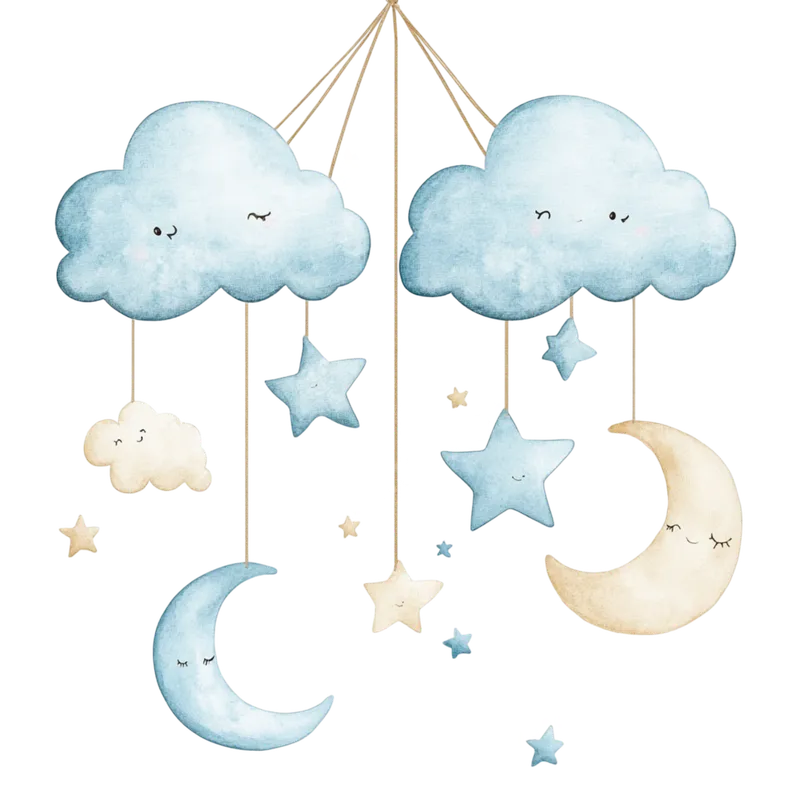 Cute Watercolor Baby Mobile DTF Transfer - Clouds, Stars & Moons
