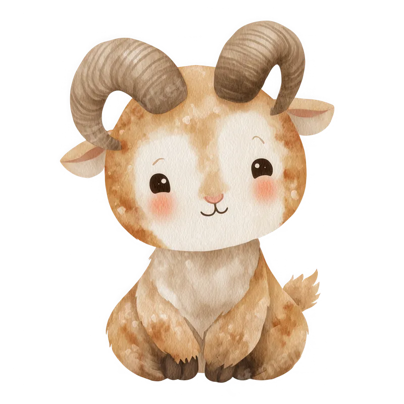 Cute Watercolor Baby Ram DTF Transfer - Adorable Farm Animal Design