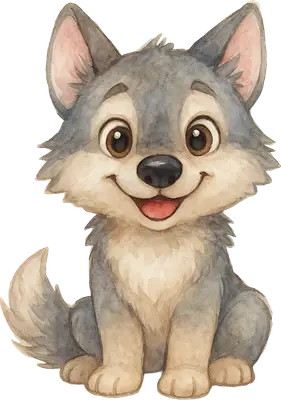 Cute Watercolor Baby Wolf DTF Transfer - Ready to Press