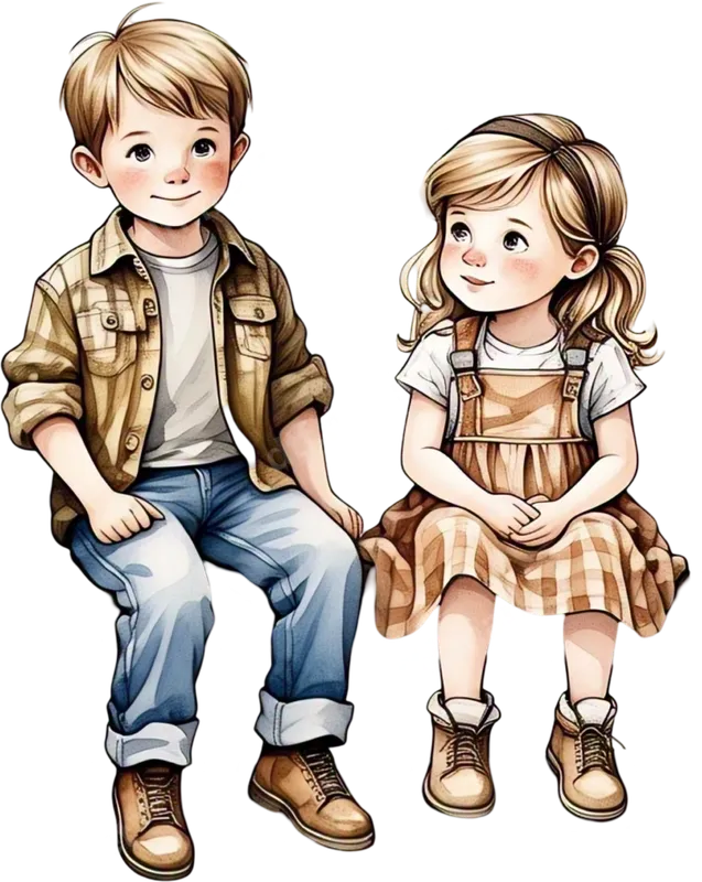 Cute Watercolor Brother Sister Kids DTF Transfer Design