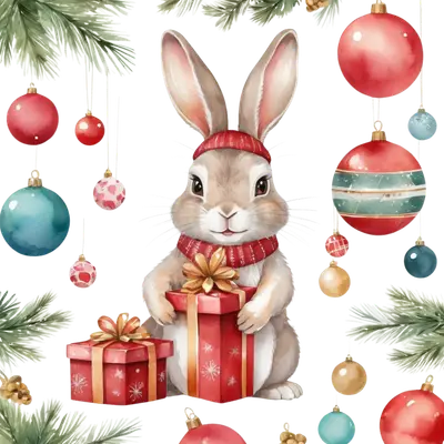 Cute Watercolor Christmas Bunny with Gifts DTF Transfer