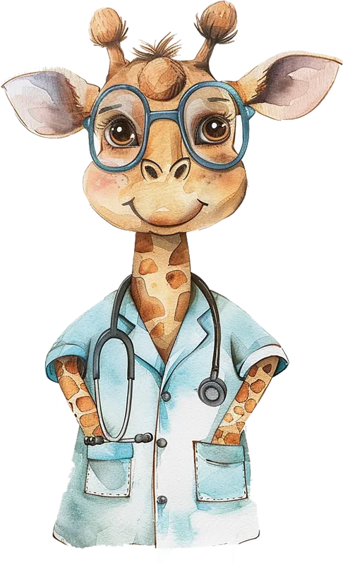 Cute Watercolor Doctor Giraffe DTF Transfer | Nurse Medical Theme