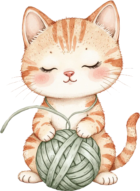 Cute Watercolor Ginger Cat with Yarn Ball DTF Transfer Design