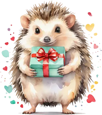 Cute Watercolor Hedgehog with Gift Box DTF Transfer