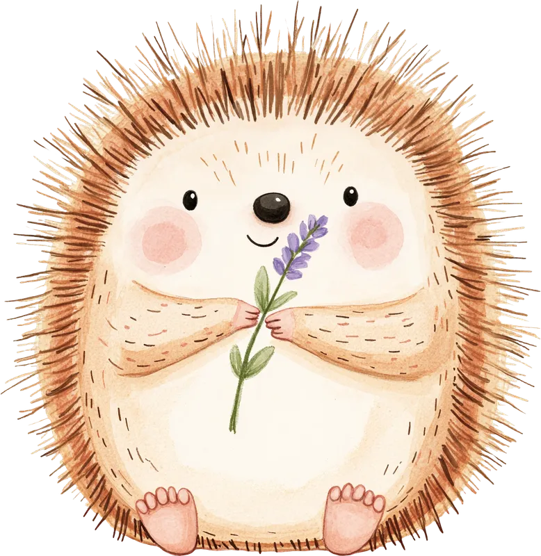 Cute Watercolor Hedgehog with Lavender DTF Transfer