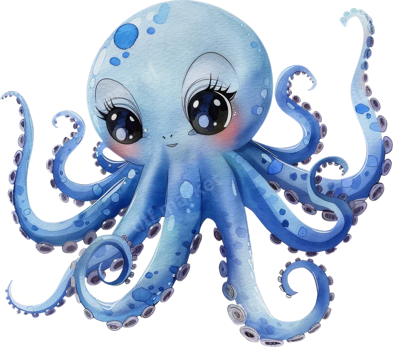 Cute Watercolor Kawaii Blue Octopus DTF Transfer | Ready to Press Heat Transfer Design
