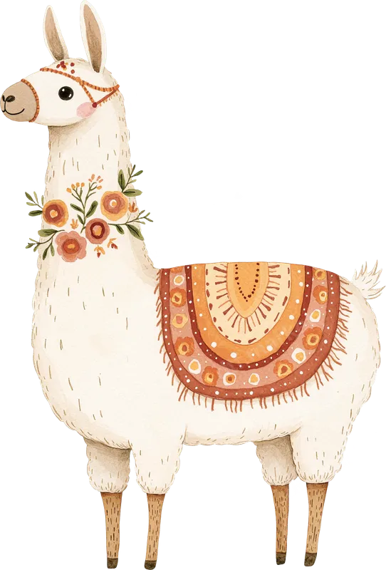 Cute Watercolor Llama DTF Transfer with Floral Wreath & Boho Blanket