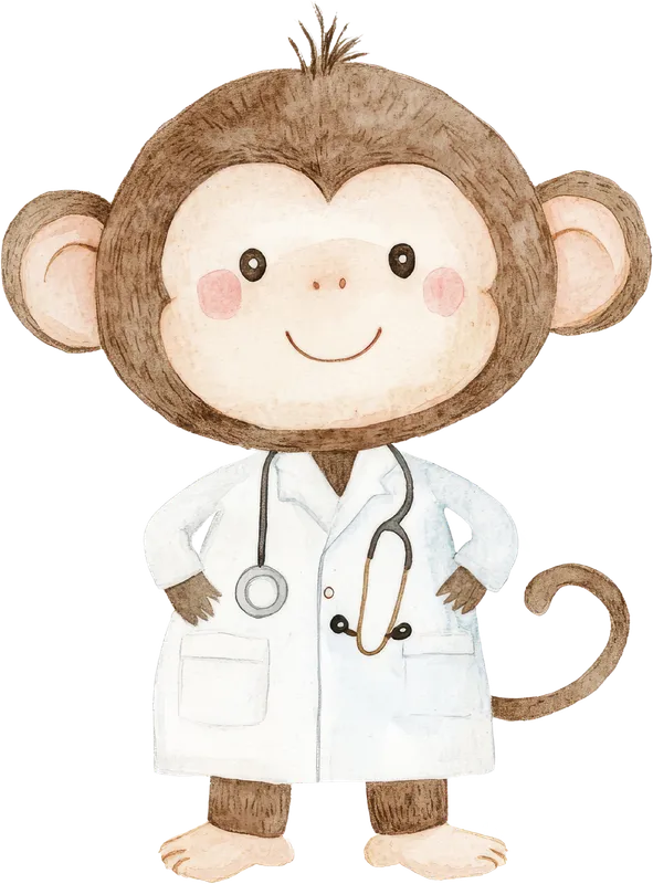 Cute Watercolor Monkey Doctor DTF Transfer for Kids Apparel