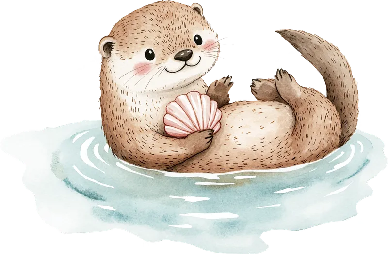 Cute Watercolor Otter DTF Transfer | Seashell River Animal Design