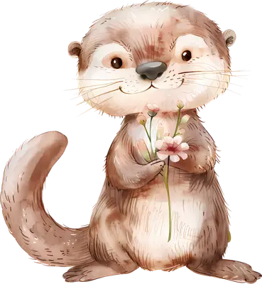 Cute Watercolor Otter with Flowers DTF Transfer